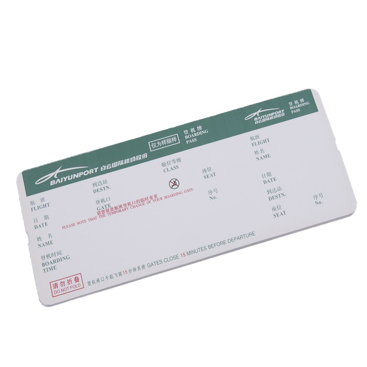 ในฐานะผู้ผลิตชาวจีนที่มีประสบการณ์ 30 ปีในอุตสาหกรรมการพิมพ์ บริษัท การพิมพ์สมาร์ทคองฮ่องกง (GZ) Guangdong (GZ) ให้บริการบัตรผ่านขึ้นเครื่องที่มีประสิทธิภาพสูงซึ่งเป็นไปตามมาตรฐาน IATA ให้กับอุตสาหกรรมการบินทั่วโลก ผลิตภัณฑ์ของเราผ่านการรับรองระบบการจัดการคุณภาพ ISO 9001 และส่งมอบตั๋วเครื่องบินมากกว่า 200 ล้านใบไปยังสนามบินใน 60 ประเทศในแต่ละปี